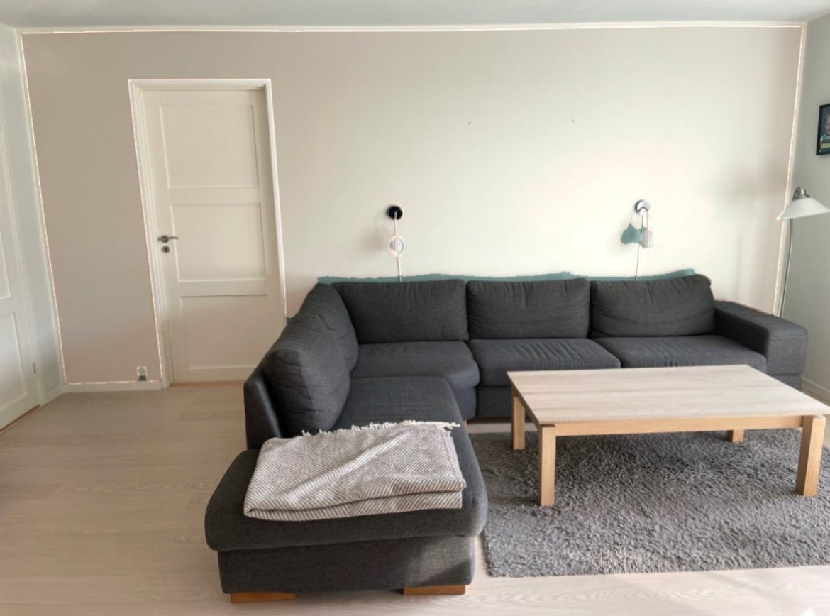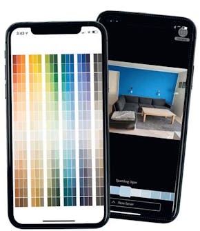 Der findes flere apps, der kan hjælpe dig: Peg på væggen med mobilen, eller tag et foto først, og mal så på det. Så ser du den valgte farve på din væg. Det er ikke altid perfekt malet, men du får en god fornemmelse af, hvordan farven tager sig ud.