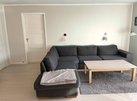 Et kort, bredt rum kan du med fordel male, så sidevæggene er mørkere end den lyse endevæg. Det vil få rummet til at synes mere harmonisk. De mørke sidevægge absorberer lyset, mens den lyse endevæg modsat reflekterer lyset. Det får os til at synes, at rummet nu er lidt smallere, men til gengæld længere - selvom vi ikke har ændret på andet end farverne.