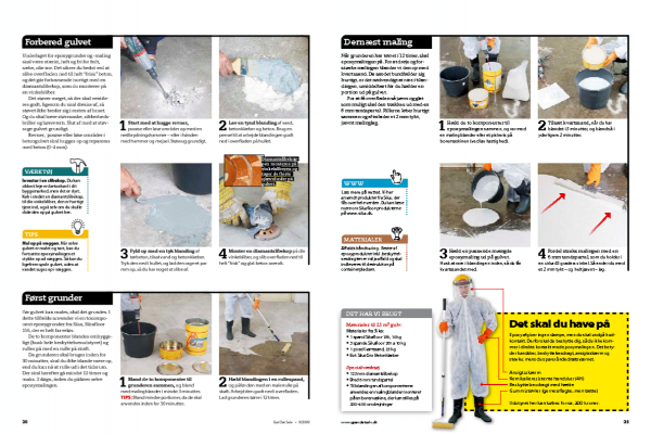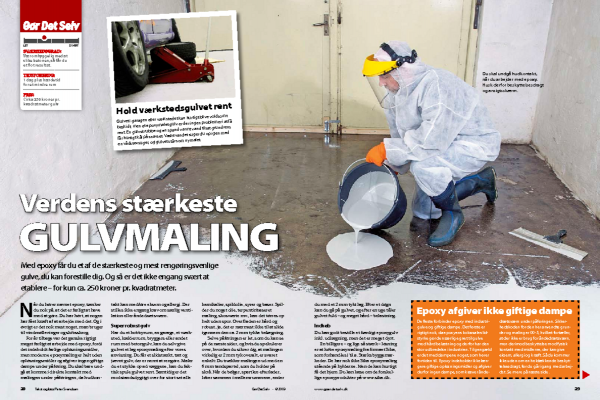 Hæld en passende mængde epoxymaling ud på gulvet. Husk at røre i blandingen inden, så du får kvartssandet med.