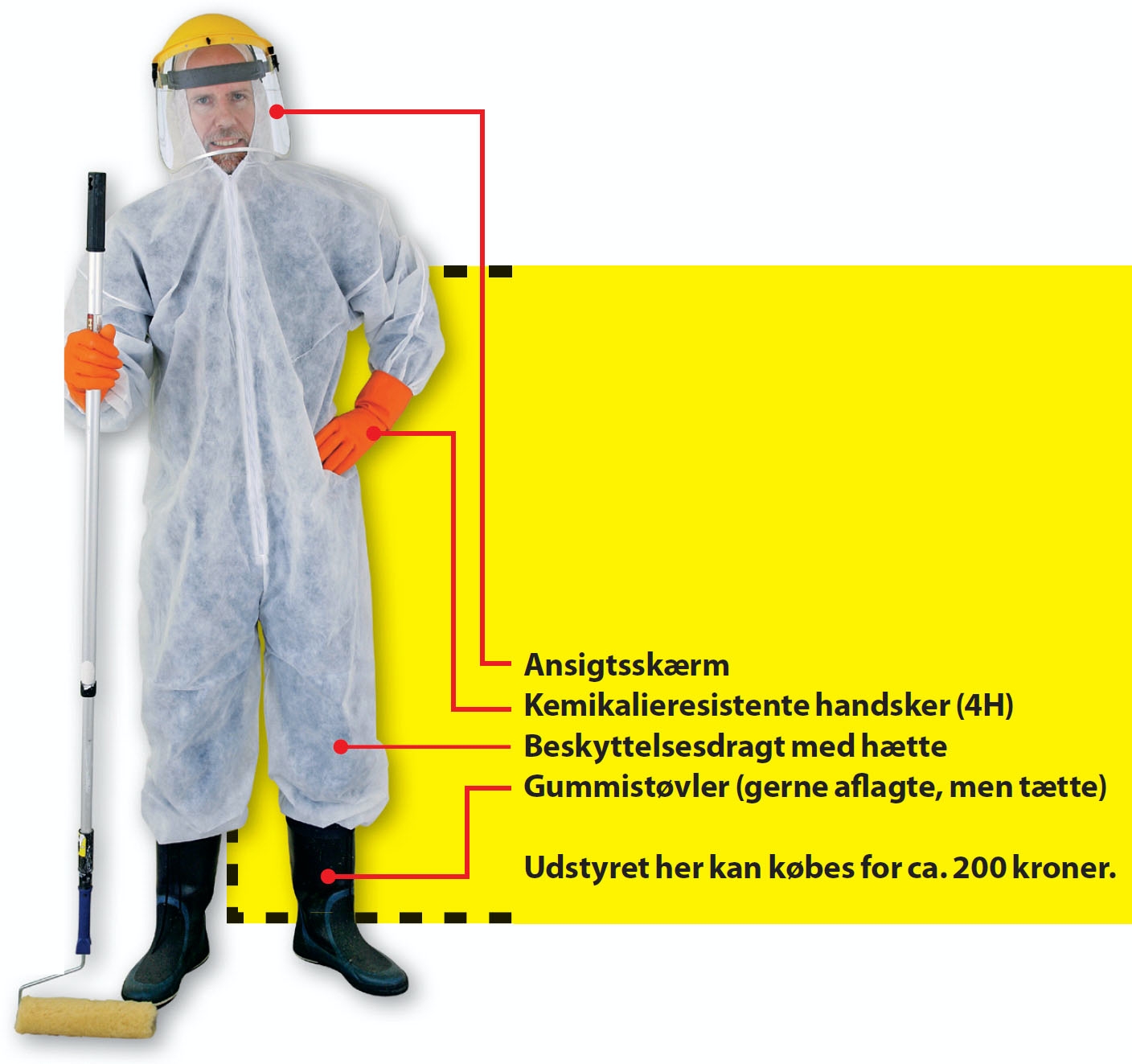 De to komponenter blandes omhyggeligt (husk hele beskyttelsesudstyret) og rulles på med en rulle på skaft.