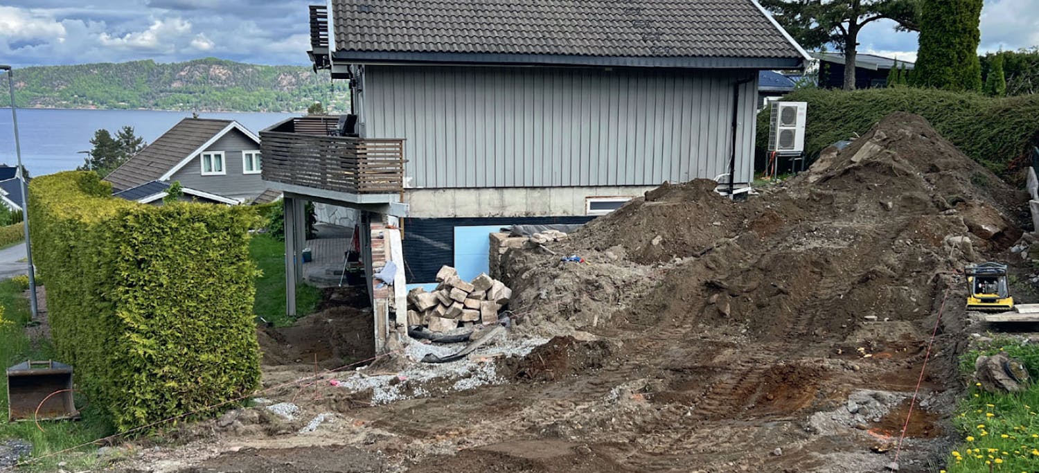 Arbejdet med indkørslen starter derfor med et kæmpe gravearbejde, hvor der samlet skal fjernes omkring 100 tons jord.