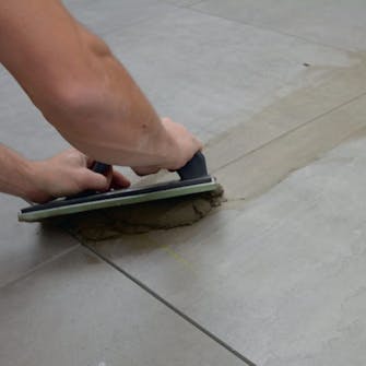 Det er ikke en begynderopgave at lægge store fliser. Skal der ovenikøbet tilskæres meget, stiger sværhedsgraden.