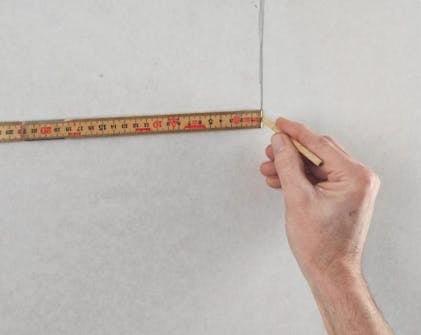Sæt en blyantstreg for hver bane. En bane glasf lt er normalt 100 cm bred, men forskyd stregen et par centimeter, så du får limet på et ekstra bredt stykke.