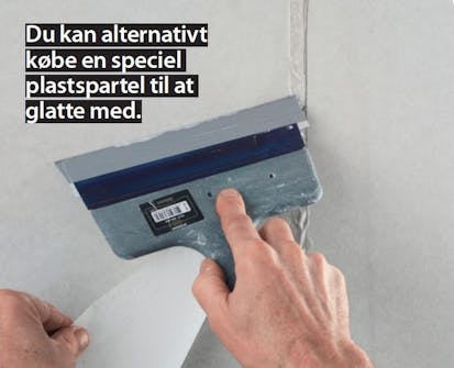 Sæt filten op, glat den ud, og tryk den fast i klæberen med en spartel. Spartlen forsynes med et par strimler kraftig tape, så spartlens skarpe hjørner og kanter ikke beskadiger glasf lten.