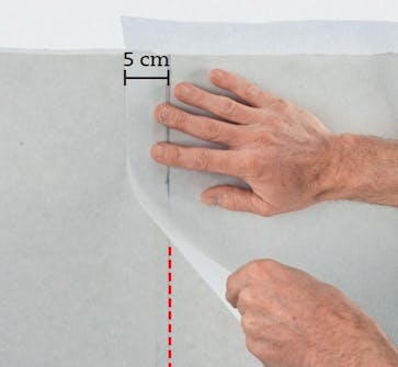 Læg næste bane ind over den foregående. Sørg for, at banen sidder lige - altså lodret - fra starten, så de to baner ligger parallelt, cirka 5 cm ind over hinanden, hele vejen igennem.