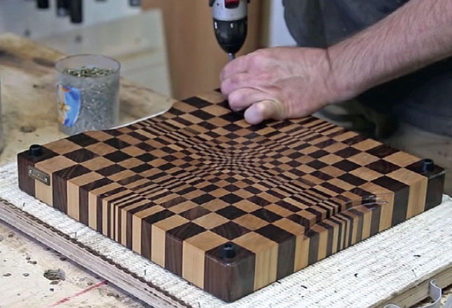 Håndtag fræses i to sider. For at gøre skærebrættet mere håndterbart fræser vi et håndtag i to af skærebrættets sider.
