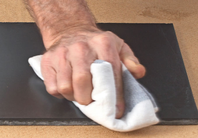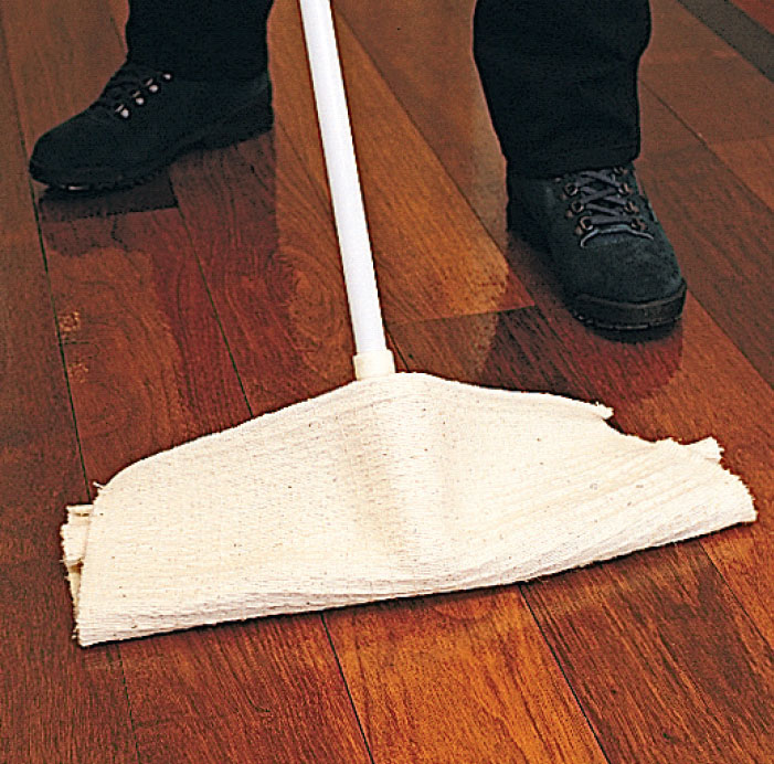 Når olien har “sat sig” i ca. 15 minutter, poleres overskydende olie af. Det kan gøres med en ren gulvklud og en kost/gulvskrubbe. Der skal poleres omhyggeligt, så alle blanke pletter fjernes.