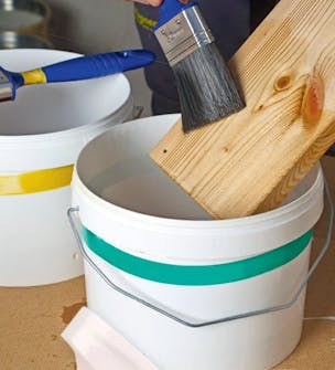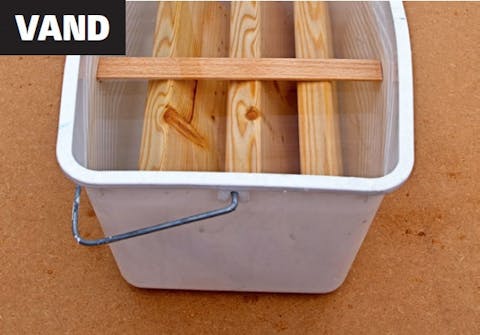 Hvor godt trænger olien ind i træet? Det er svært at se, når vi olierer overfladen, så her overdriver vi og placerer endetræet i et oliebad.