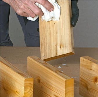 Mellem varme og kulde får de et enkelt skrab med en skarp ziehklinge på oversiden for at simulere slitage.