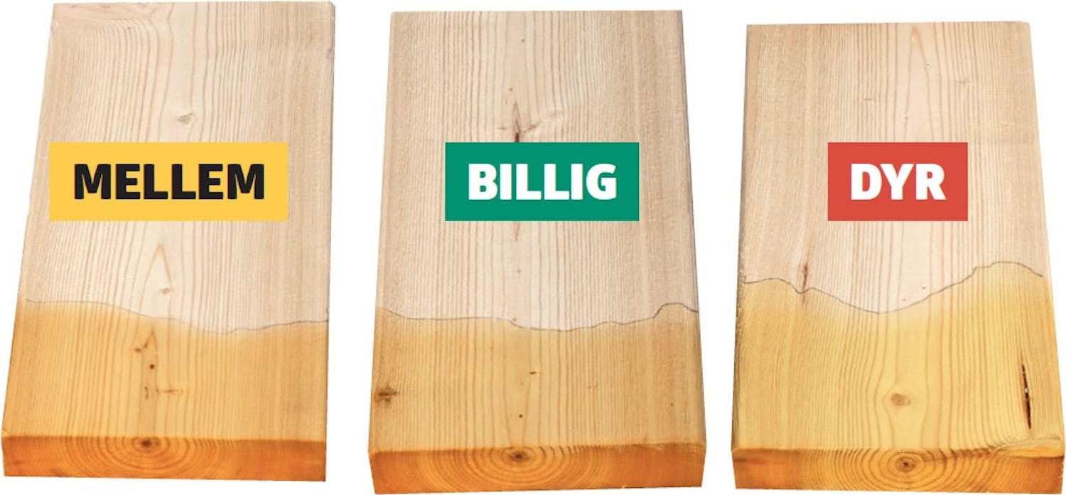 Vi behandler alle teststykker med olie. Teststykkerne med nr. 1 behandles med den dyre, nr. 2 med den mellemste, og nr. 3 med den billige olie. Teststykkerne dækkes omhyggeligt hele vejen rundt.