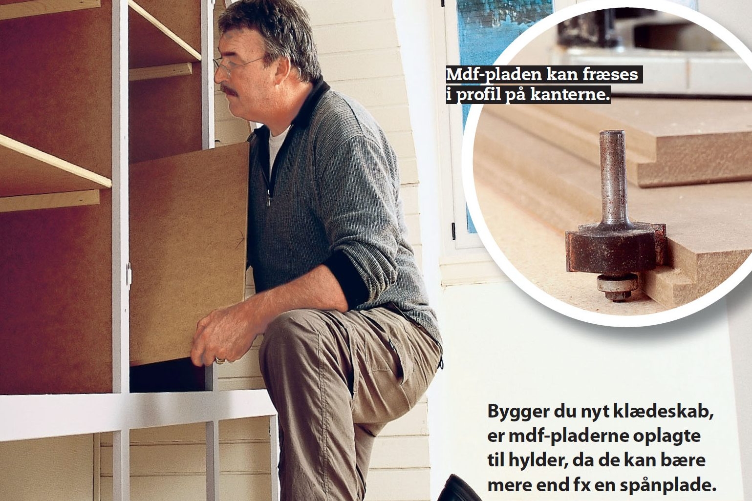 MDF-plader er blevet fremstillet kommercielt siden 60’erne. Navnet er en forkortelse af Medium Density Fibreboard og består af træfibre og lim, der er sammenpresset under høj temperatur og tryk. MDF-plader er mere kompakte end fx spånplader, og den finere materialestruktur gør det muligt fx at fræse kanter og tilpasse træpladen på samme måde som med massivt træ.