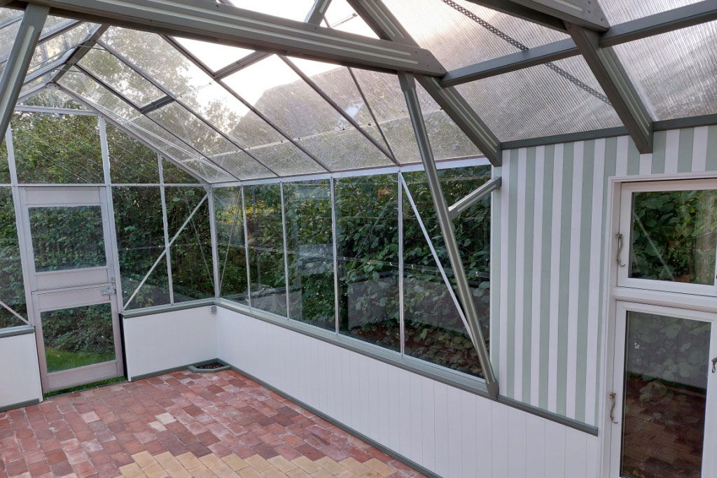 Vi ser mange orangerier i vores konkurrence, og de er alle rigtigt flotte. Men Finn har formået at genbruge et gammelt og slidt Juliane-drivhus og forvandlet det til et overlegent og flot orangeri med masser af flotte detaljer.