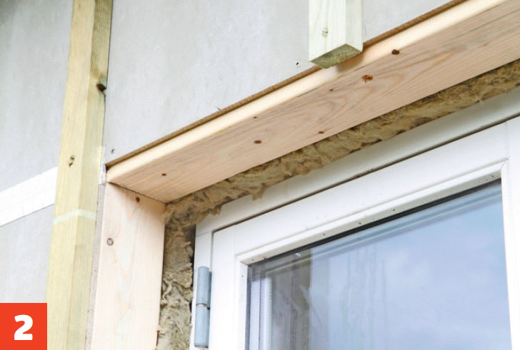 Den gamle sålbænk i sten er blevet fjernet og erstattet med en sålbænk i mineraluld. Sålbænken er armeret allerede før det første pudslag, og forkanten er yderligere forstærket med en spartelprofil.