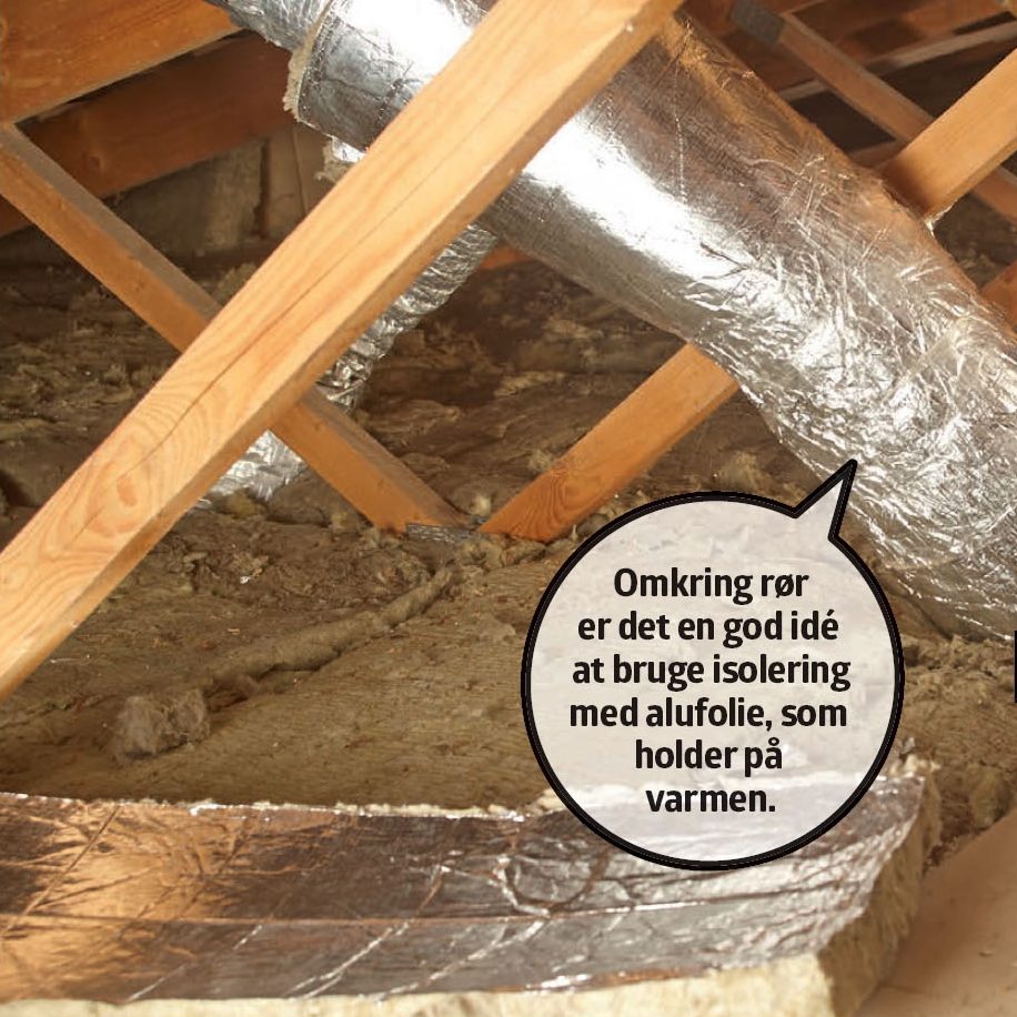 Få styr på rør, kabler og andre installationer. Arrangér dem, så de ligger så fladt som muligt på den eksisterende isolering. Brug evt. en plade til at fordele vægten, hvis du skal bevæge dig rundt oven på isoleringen.