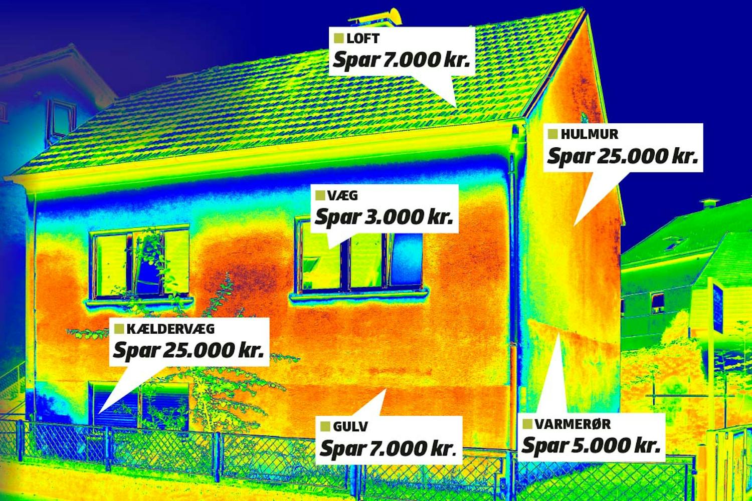 De viste besparelser tager udgangspunkt i et modelhus, der er typisk for danske parcelhuse. Beregningerne er udført af en bygningsekspert.