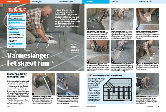 Pladerne findes faktisk med spor i, men de passer ikke til denne opgave. I stedet vælger vi at montere almindelige skumplastplader, og så fræser vi selv spor til varmeslangerne.