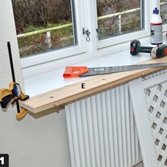 Radiatorskjuleren laves som et fritstående skelet, der nemt kan flyttes væk, så du kan komme til radiatoren. Den fastgøres blot til væggen med et vinkelbeslag gennem toppladen.