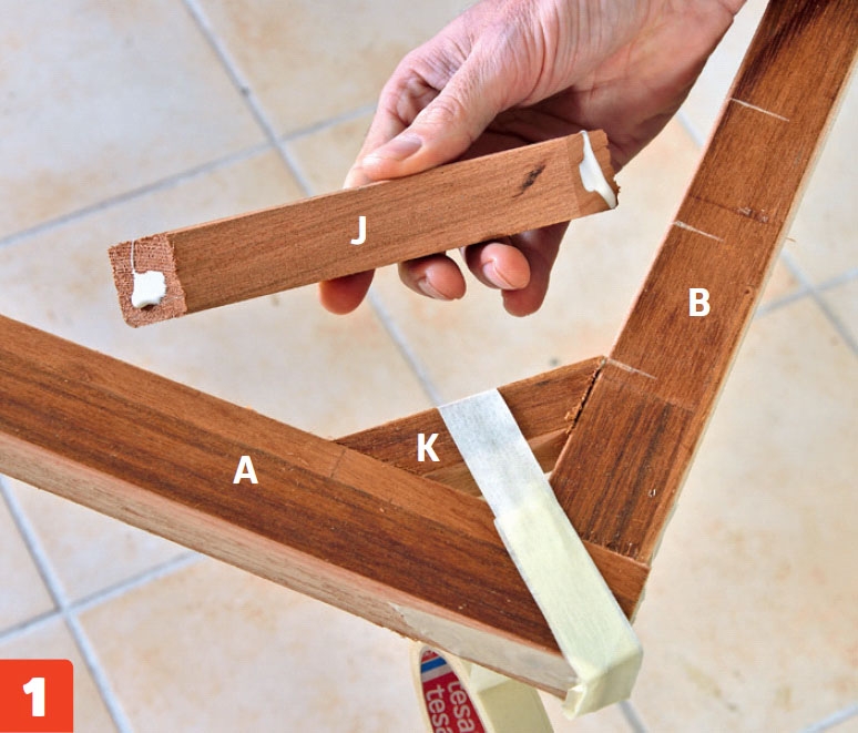 Vi begynder med at samle rammen, der består af syv dele. Delene til rammen her er skåret ud i en bredde på 35 mm. Husk at bore for, så træet ikke flækker.
