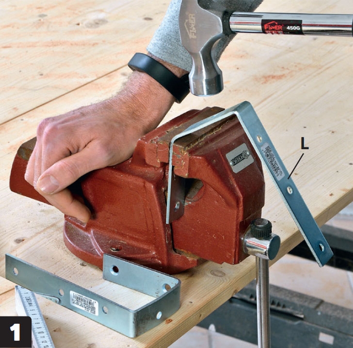 Sæt vinkelbeslaget i skruestikken. Bøj det, så det passer til at kunne gribe om radiatoren. Gør det samme med det andet beslag.