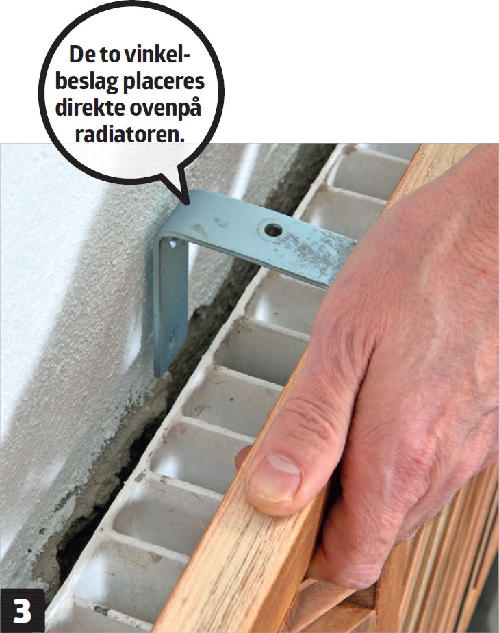 Du skal bruge et par vinkelbeslag, så skjuleren kan hænge på radiatoren. Mål på stedet, hvor bred en radiator beslagene skal kunne gabe over.