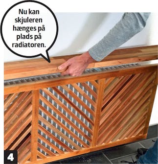 Skær hylden, der skal sidde oven på skjuleren, til. Hylden skal stikke cirka 1 cm ud over skjulerens forkant.