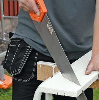 Brædderne til de nye vind skeder skæres til. Vinklen, de skal samles med oppe ved tagryggen, kan du ofte kopiere fra de gamle brædder.
