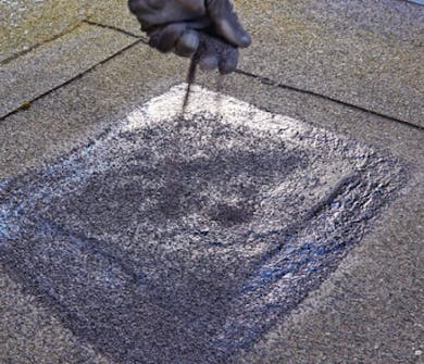 Kommer der huller i tagpap, kan du lappe det effektivt med de samme materialer, som det moderne tagpap er bygget op af: bitumen, som du køber som tagmasse, glasvæv - og skifergranulat i samme kulør som det omgivende pap.