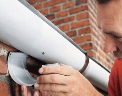 En aluinddækning gøres fast på vindskedens overkant med aluskruer - her som erstatning for en trædækliste. Du må selv finde et profil, der passer.