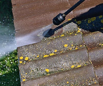 Tryk glasvævet godt ned i massen, og smør lappen grundigt ind i tagmasse ovenfra. Start ude i kanten, så lappen ligger fast.