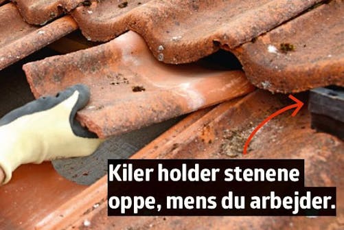 Den ødelagte sten fjernes. Stenen på venstre side må også løftes, før du kan få den ud. Brug kraftige kiler til at holde stenene oppe, mens du arbejder.