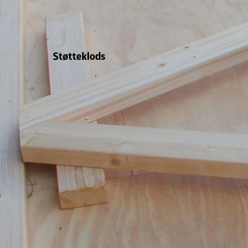 Skru bræddestumper fast på pladen langs stregerne. Så kan du placere spær, hanebånd og skråstivere præcis samme sted hver gang.