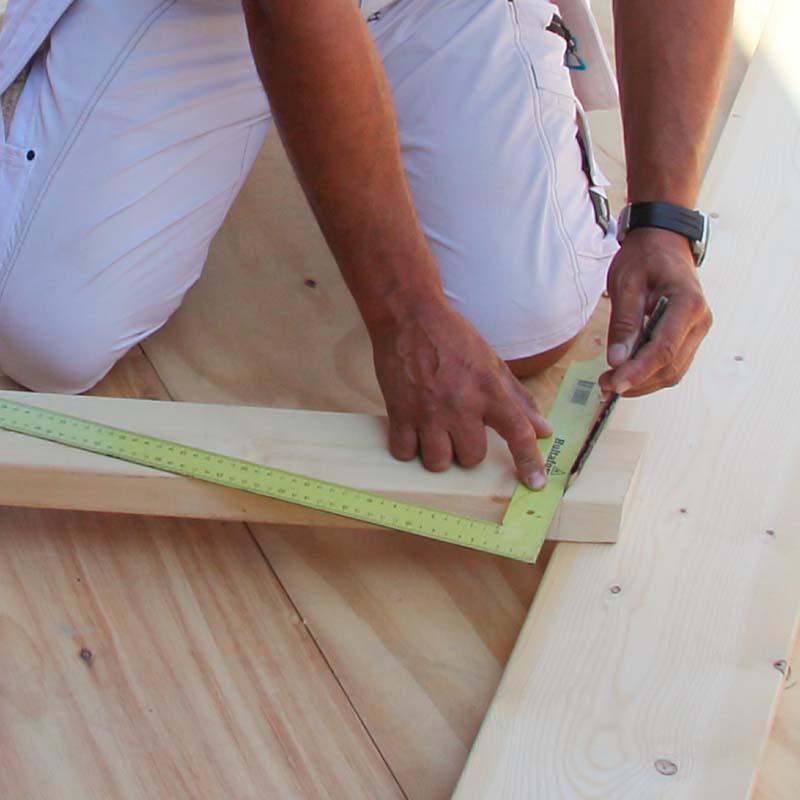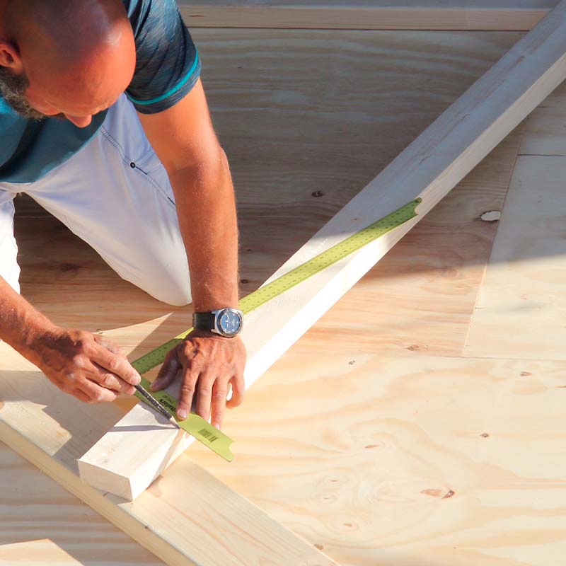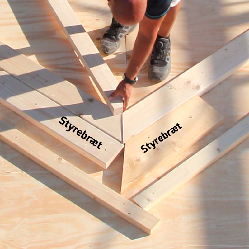 Læg klodser med samme dimension som spæret under hanebånd og skråstivere, når du streger op. Det gør det nemmere at styre.