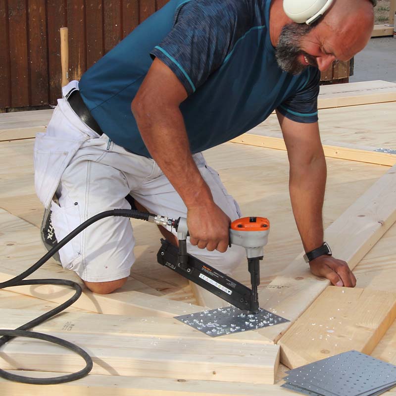 Hvis du skal bygge et spær med hanebånd, er det en god idé at samle spærene på selve skabelonen. Så er du sikker på, at alt bliver, hvor det skal.