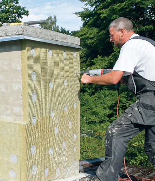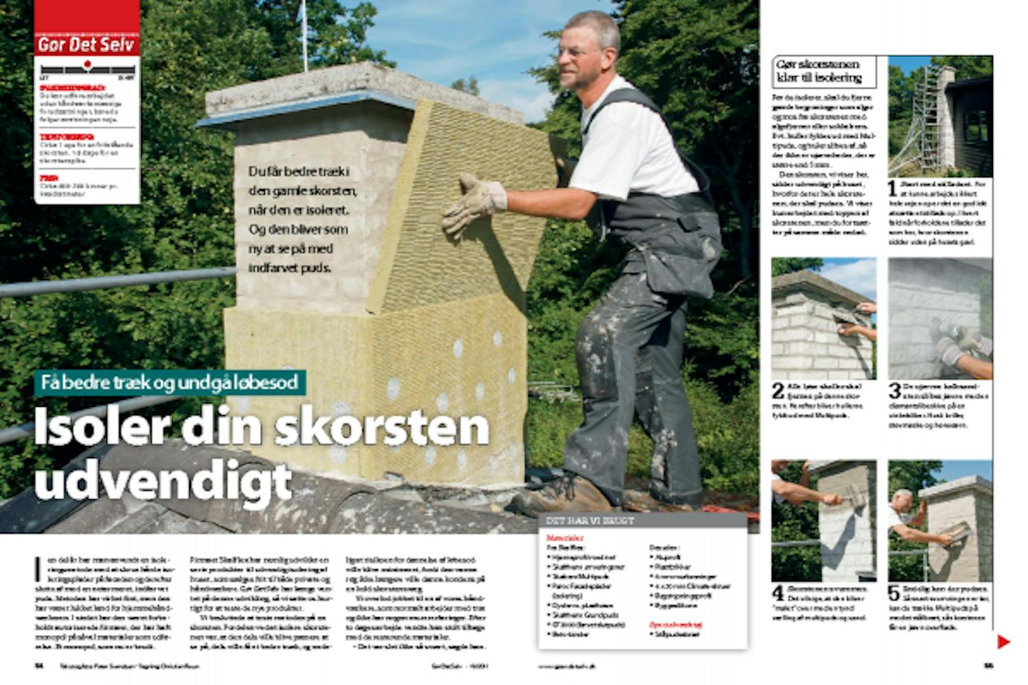 Når vi isolerer skorstenen udefra, holder vi den så at sige “inde i varmen”, så den ikke udsættes for vind og vejr. Det bevirker, at den ikke længere risikerer at slå revner pga. vand og frost. Og en utæt skorsten trækker ikke ordentligt. Samtidig gør isoleringen, at røgen ikke køles for hurtigt ned og danner kondens indvendigt i skorstenen. Det nedsætter risikoen for løbesod.