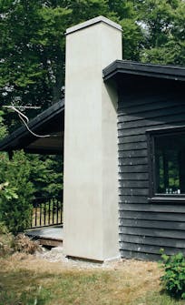 Skorstenen svummes. Det vil sige, at den bliver “malet” over med en tynd vælling af multipuds og vand.
