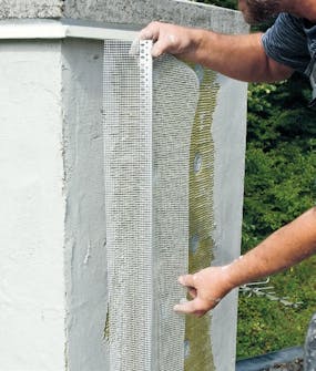 Start i hjørnet, og træk 5-8 mm grundpuds på hjørnerne. Tryk de særlige hjørneprof ler med armeringsnet fast på alle hjørnerne.