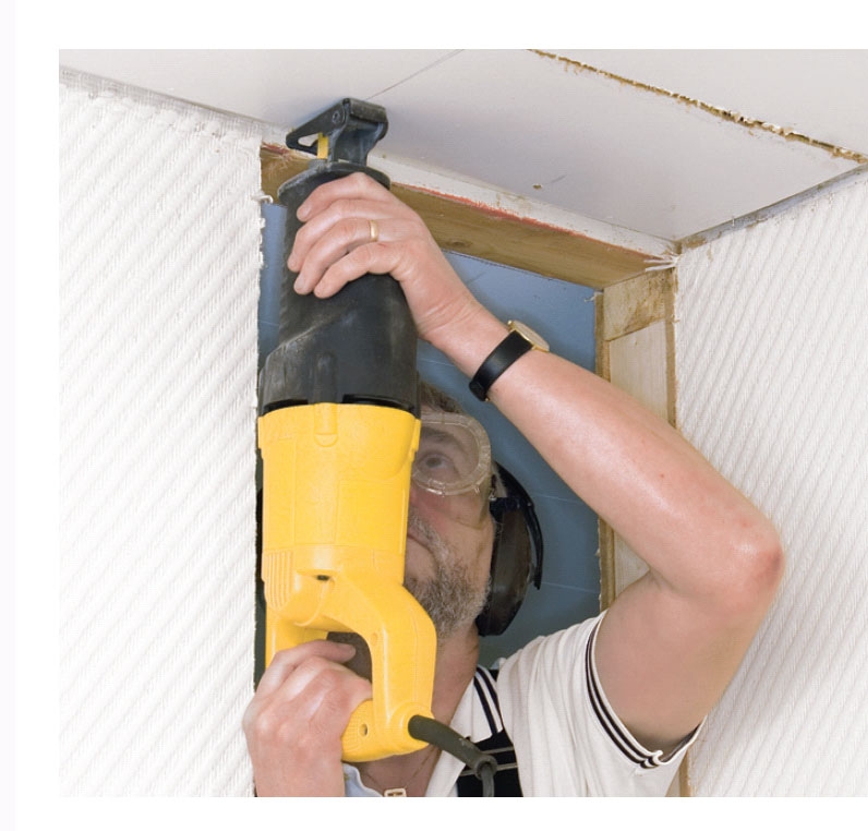 Hullet til skorstenen saves med en stiksav. Er du det mindste i tvivl om, hvorvidt der ligger ledninger i væggen, borer du en række inspektionshuller fra gulv til loft og saver med hovedafbryderen slået fra - og bruger en sav med batteri.
