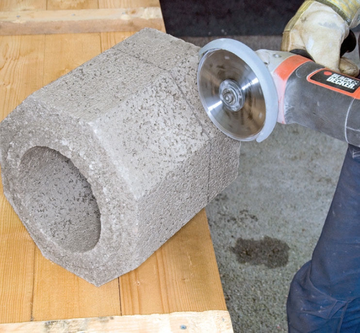 Hullet gøres 2 cm bredere end blokken, så der er plads til pæne fuger.