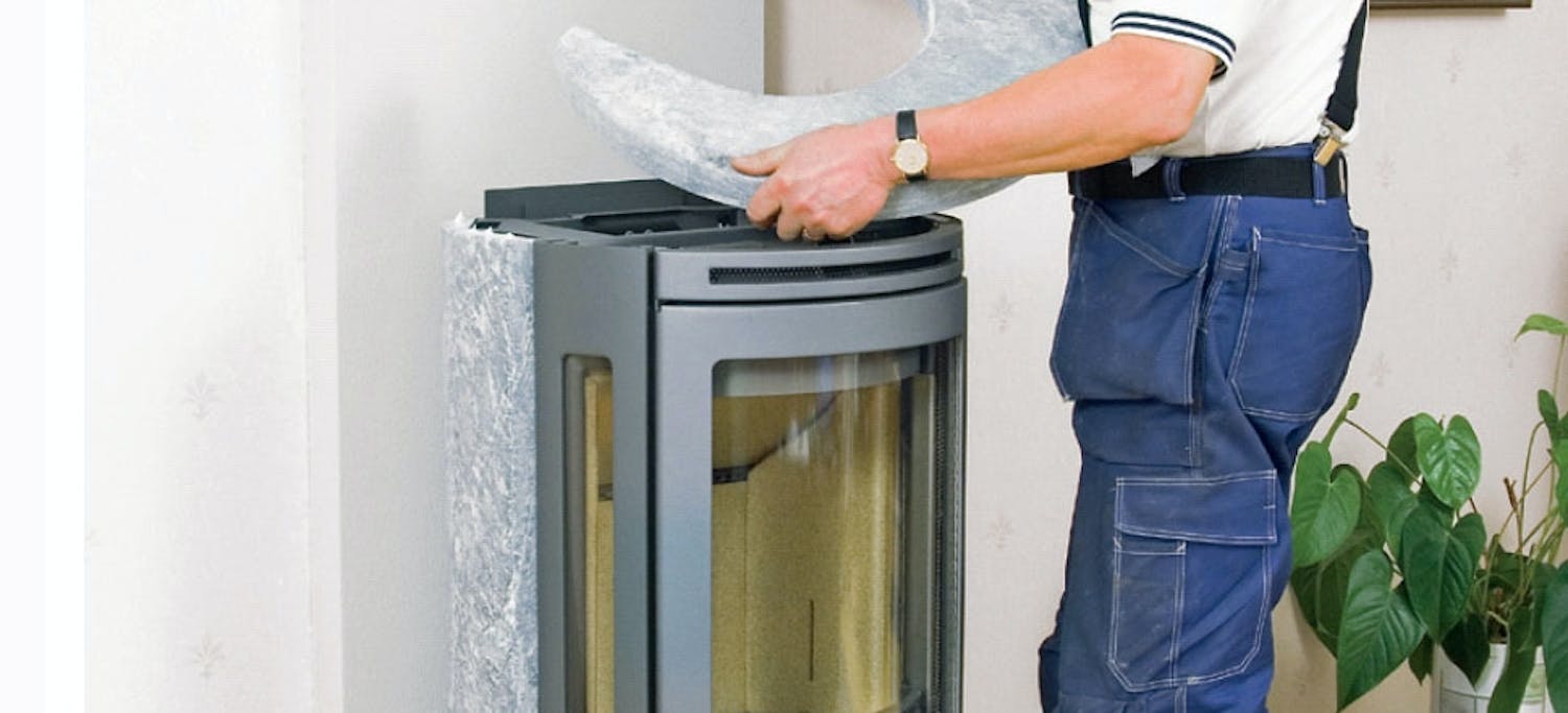 Og så skal brændeovnen selvfølgelig også stilles op og sluttes til skorstenen.