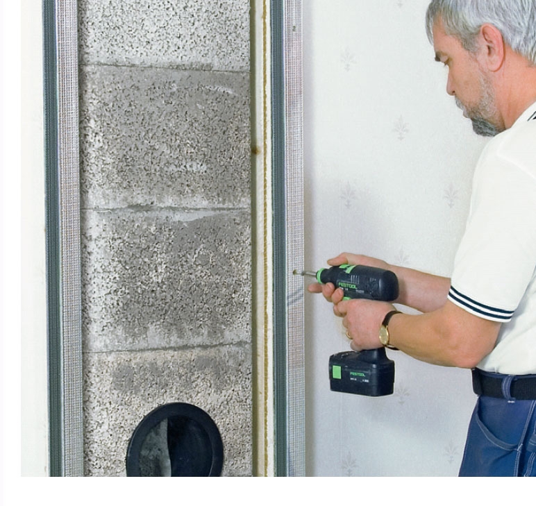 For at få skorstenen til at syne større skruer vi stållægter op, så vi kan trække fronten frem med en plade. VIGTIGT! Vælger du denne løsning, må lægterne ikke være af træ, og din skorstensfejer skal kunne tjekke skorstenen.