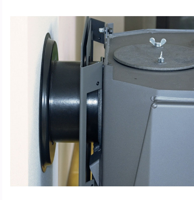 Røgen fra ovnen føres ind i skorstenen gennem et hul, som vi borer, hugger ud, tætner og glatter på samme måde som ved renselemmen. Placeringen afhænger af ovnen. I hullet sættes i første omgang en rørbøsning.