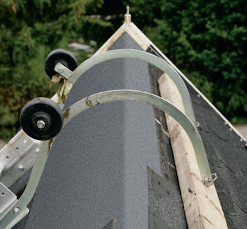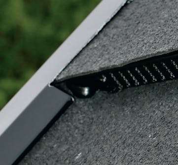 Vindskederne i gavlene er af træ, og de skal naturligvis beskyttes. Når shinglespladerne er ført hen til vindskederne og op over kanten, skal der sternkapsler på. Det er smalle aluminiumsskinner, som kan fås i hvid, sort og aluminiumsfarve.