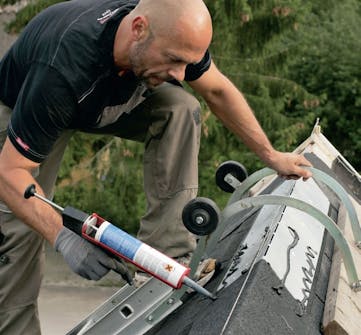 Skru sternkapslerne fast. Og giv for en sikkerheds skyld alle samlinger en lille klat tagklæber, så det bliver helt tæt.