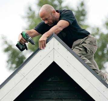 Du skal sikre dig, at der ikke er et spær lige der, hvor du har tænkt dig at lave hul til udluftningshætten. Bor først med et 10 mm bor, og sav så hullet ud med en almindelig stiksav.