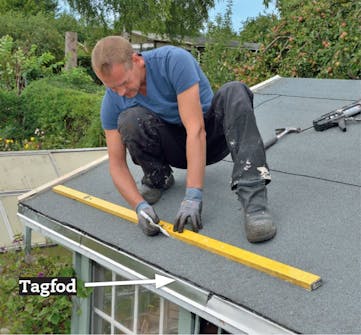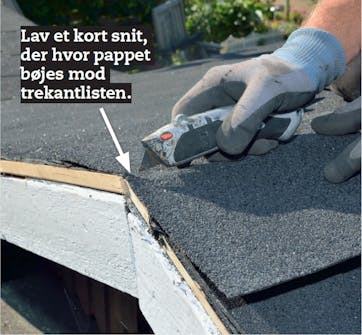 Buk pappet godt ned langs taget. Er pappet ikke gjort blødt af solen, kan du bløde det op med en varmeblæser.