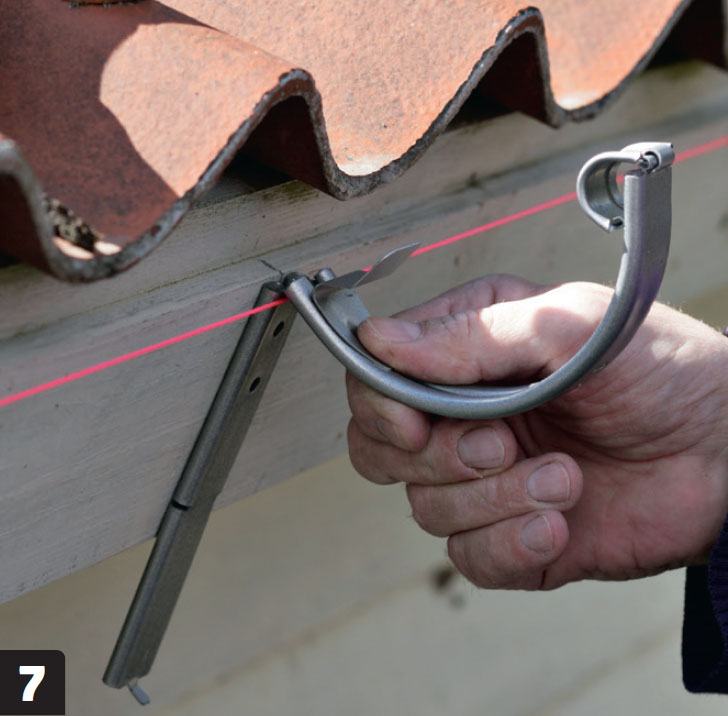De nye rendejern sættes op, så tagrenderne får et svagt fald hen mod nedløbsrøret. Faldet skal være mindst 1-2 mm pr. meter. De skal vippes, så tagrendernes forkant ligger lidt lavere end bagkanten. Hvis du er omhyggelig med opsætningen af de nye rendejern, bliver resten meget nemmere.
