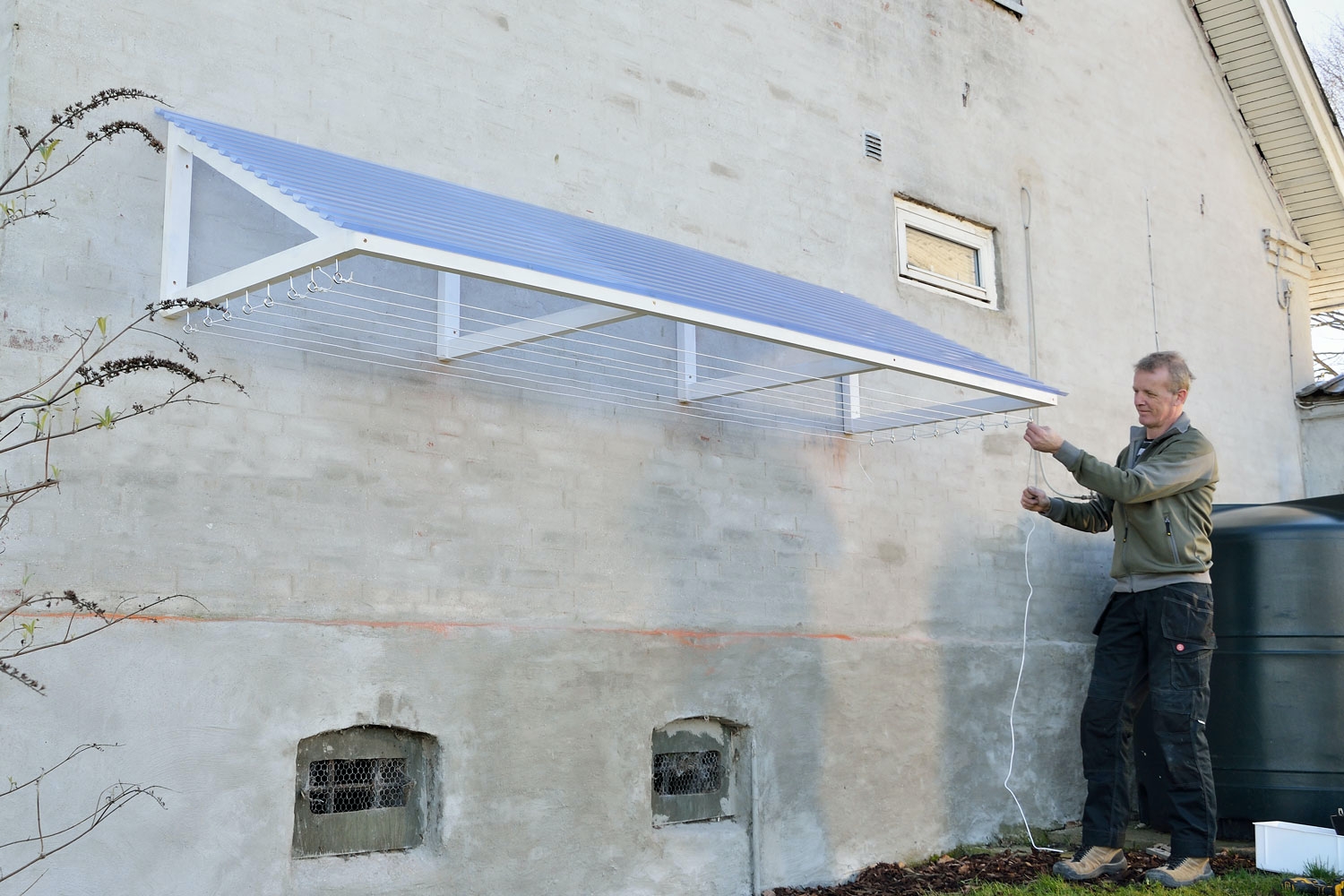 Haven Vasketøj i tørvejr Med en tørresnor dækket af en markise kan vasketøjet hænge til tørre i det fri, men i læ for småregn og fugleklatter. Se hvordan du let bygger det selv.