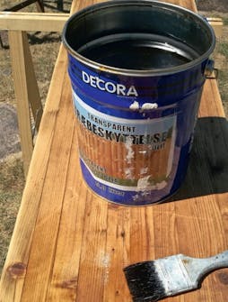 Bjælken slibes, så fladen er glat og jævn. Sørg for at holde slibemaskinen i konstant bevægelse. Hvis du “holder stille” og kommer til at slibe for meget ét sted, kan der komme en lille fordybning.