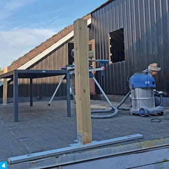 Brædderne til underlaget lægges ud og skrues sammen, så de kan rettes op som en samlet ramme. Opretning sker med murpap, og rammen fastgøres ikke til taget nogen steder.