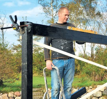 Kontroller, at remmen er helt vandret. Små unøjagtigheder kan justeres ved at lægge strimler af murpap mellem stolpe og rem.
